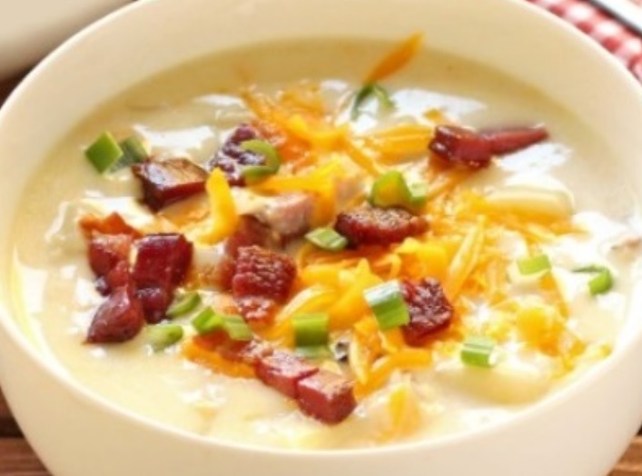 Serve warm, garnished with desired toppings(crisp bacon pieces,cheddar cheese or green onion).